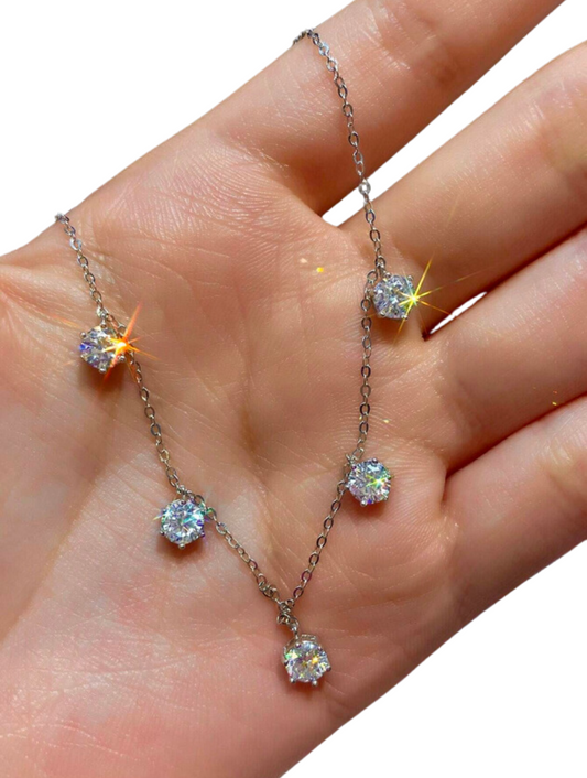 Elegant Moissanit Halskæde med Fem Diamanter | S925 Sølv