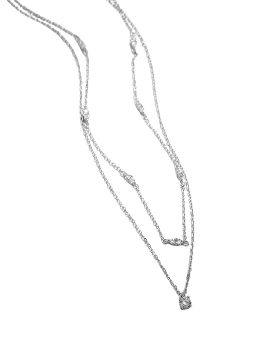 Dobbeltlags Moissanit Halskæde | S925 Sølv