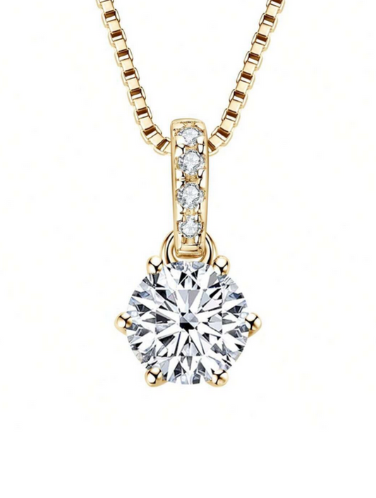 Elegant Moissanit Vedhæng Halskæde | 18 karat Forgyldt
