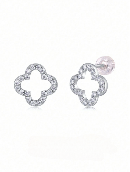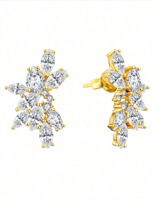 Elegante Firkløver Moissanit Øreringe | Forgyldte Ørestikker
