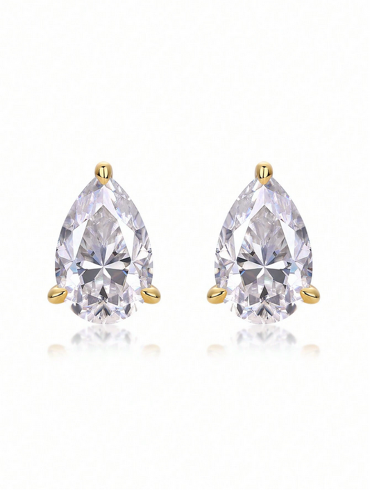 18 Karat Forgyldte Moissanit Dråbeformede Øreringe | Minimalistisk Glimmer