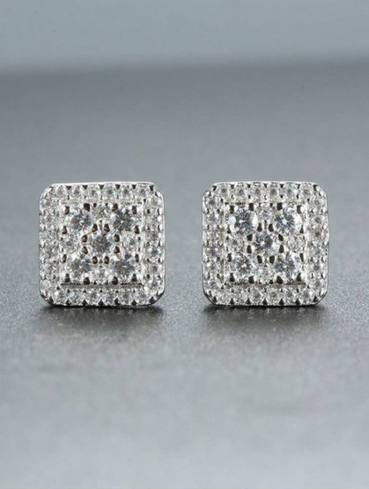 Firkantede Hængende Øreringe med Fuld Diamant | S925 Sølv