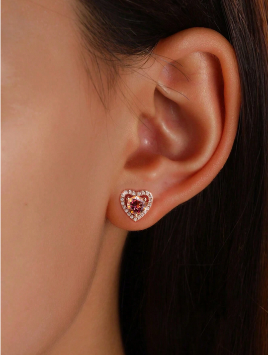 Hjerteformede Moissanit Øreringe | Elegante Ørestikker