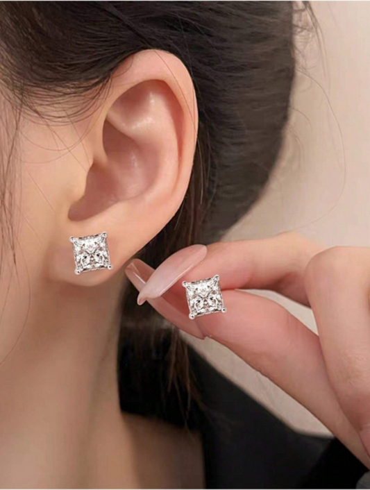 Firkantede Moissanit Øreringe | Moderne S925 Design