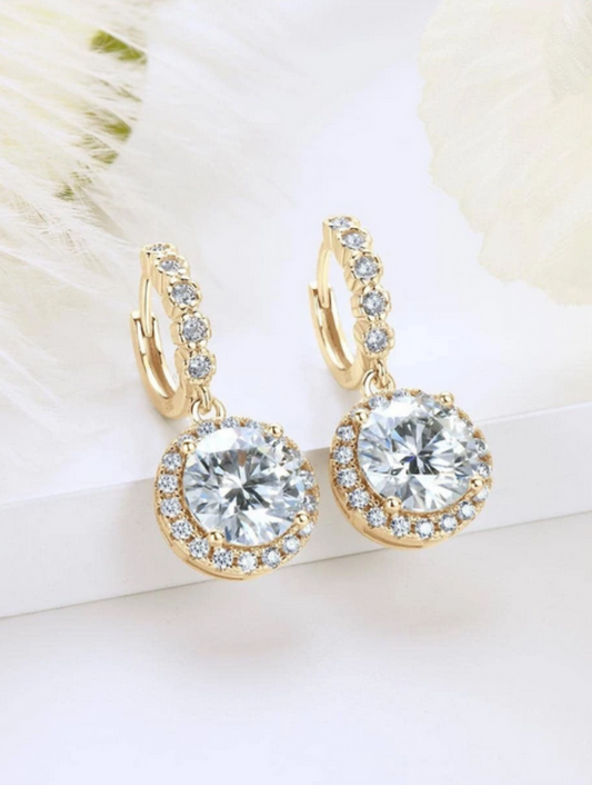 Halo-øreringe i Gult Guld med Moissanit | Elegant Design med Dingler