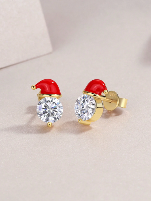 Julemandshat Moissanit Øreringe | 18 karat forgyldt