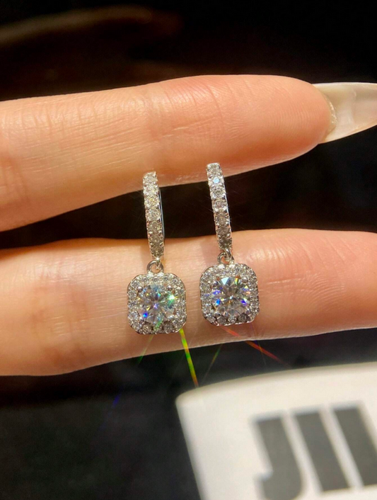 Luksuriøse Moissanit Firkantede Øreringe | Rhodiumbelagt