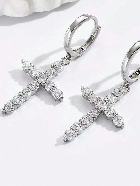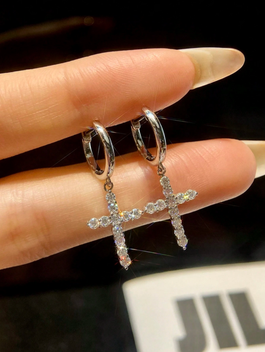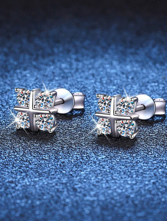 Klassiske Kors Moissanit Øreringe | S925 Sølv
