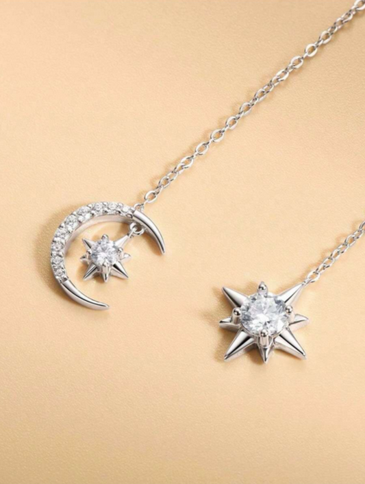 Måne & Stjerne Moissanit Øreringe | 925 Sølv