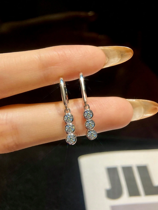 S925 Moissanit 3-Klø Øreringe | Unisex Elegance