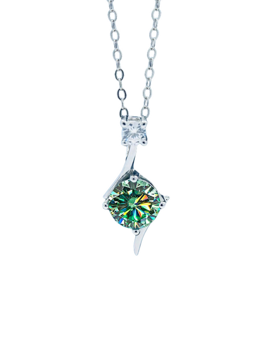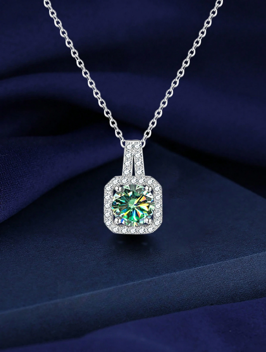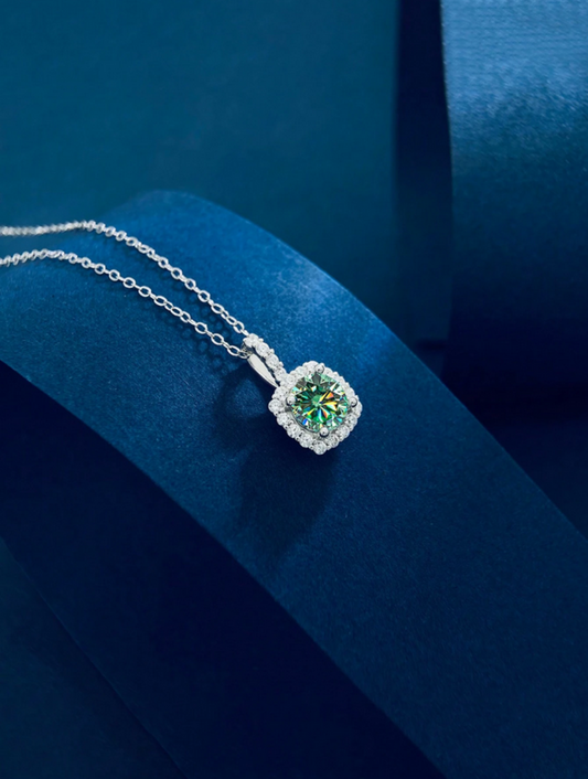 Emerald Elegance Moissanite halskæde | S925 Sterlingsølv blå-grøn sten