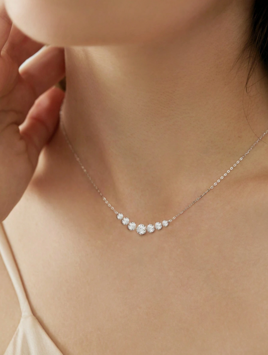 Smiling Seven Princess Moissanite Necklace | S925 Sterling Silver