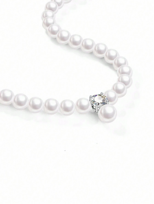 Silver Moissanite Pearl Necklace | Elegant Simple Design