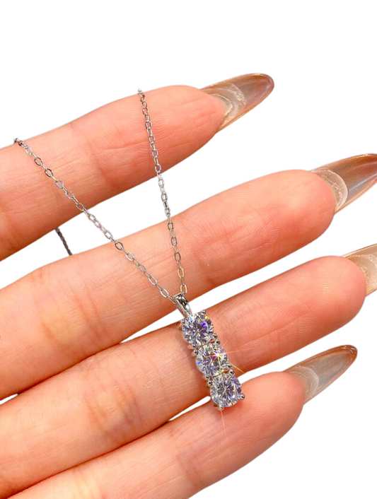 Luksus Moissanit Halskæde med Tre Diamanter | S925 Sølv