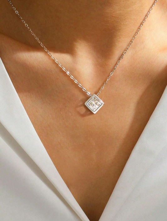 Minimalistisk Halskæde i 925 Sterlingsølv med Moissanit | Daglig Elegance