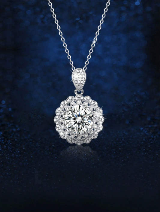 Luksuriøs Moissanit Halo Halskæde | Elegant Vedhæng