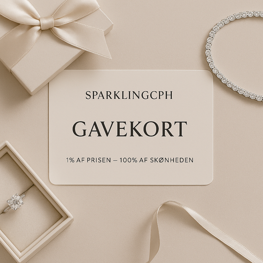 Giv valgfrihed med et SparklingCPH Gavekort. Lad dine kære vælge deres yndlingssmykke fra vores smukke moissanite kollektion. Perfekt til enhver anledning.