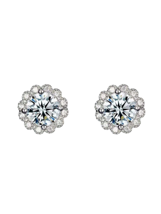 S925 Blomster Moissanit Øreringe | Hypoallergenisk Glitrende