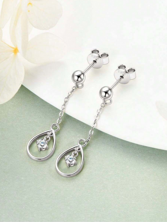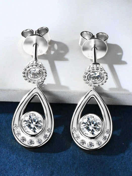 Sølv Moissanit Dråbeformede Øreringe | Klassisk Skønhed