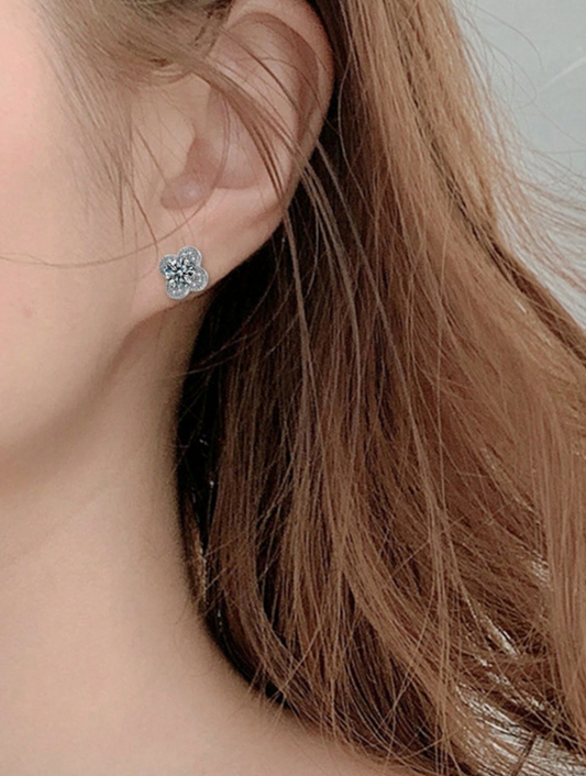 S925 Moissanit Firkløver Øreringe | Lucky Sparkle