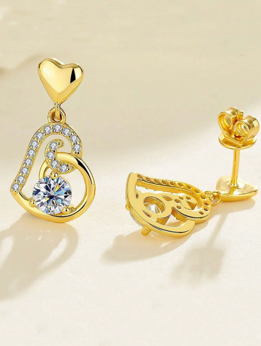 S925 Sølv Moissanit Hjerteøreringe | Tidløs Glitre