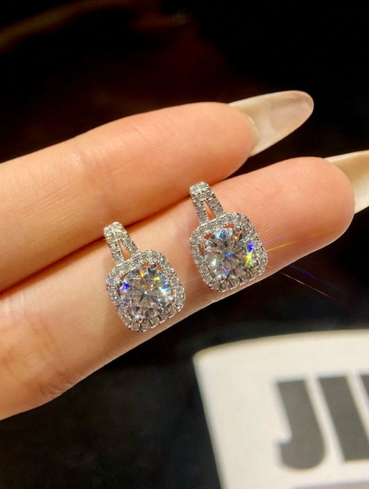Firkantede Moissanit Øreringe | Moderne S925 Design