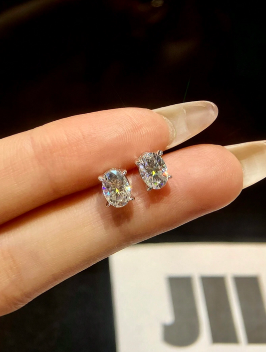 Moissanit Ørestikker | Ovalt Design