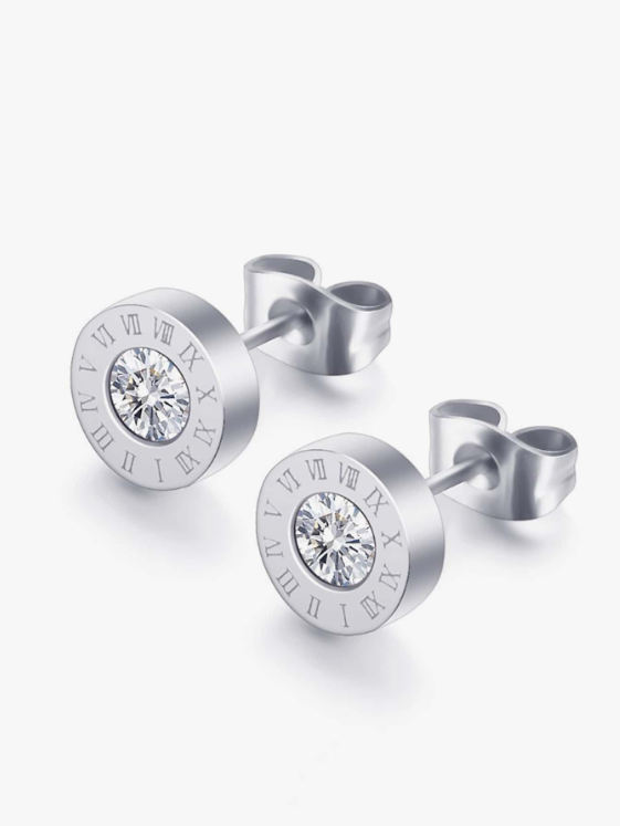 Disse smukke og moderne ørestikker kombinerer et tidløst design med luksuriøse detaljer. Øreringene er udformet i enten guld- eller sølvlook og har en rund front dekoreret med elegante romertal, der giver et eksklusivt og sofistikeret udtryk. I midten prydes de af en klar, funklende zirkonsten, som reflekterer lyset perfekt og tilføjer et strejf af glamour til enhver stil.