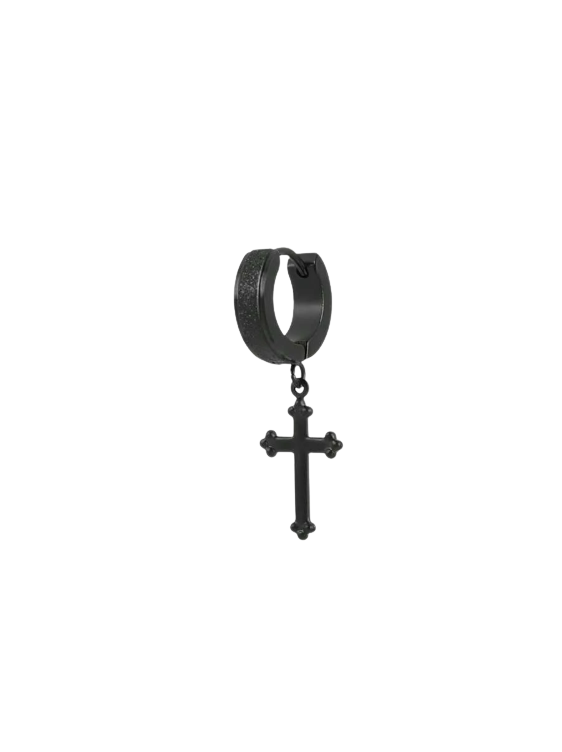 Denne moderne kors hoop-ørering kombinerer et råt udtryk med et stilrent og enkelt design. Den detaljerede korsvedhæng giver øreringen karakter og attitude, mens den brede, matte hoop skaber en solid og maskulin finish.
